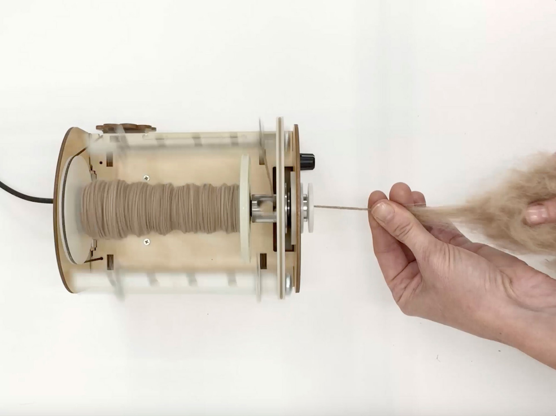 Conformations, Laura Splan, 2019, still from video of alpaca fiber spinning.