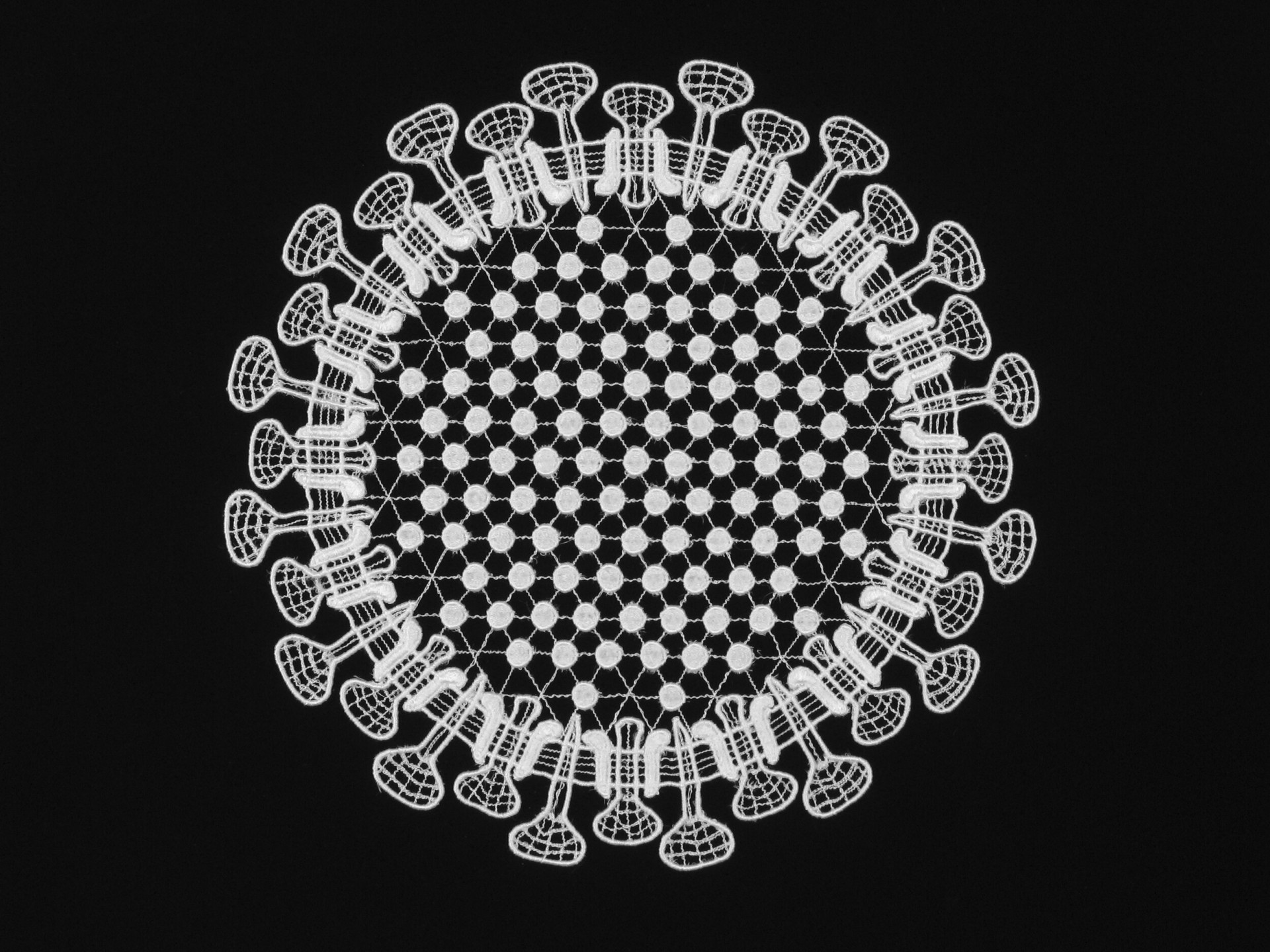 Doilies (SARS), Laura Splan, 2004, lace sculpture based on SARS-CoV-1 coronavirus.